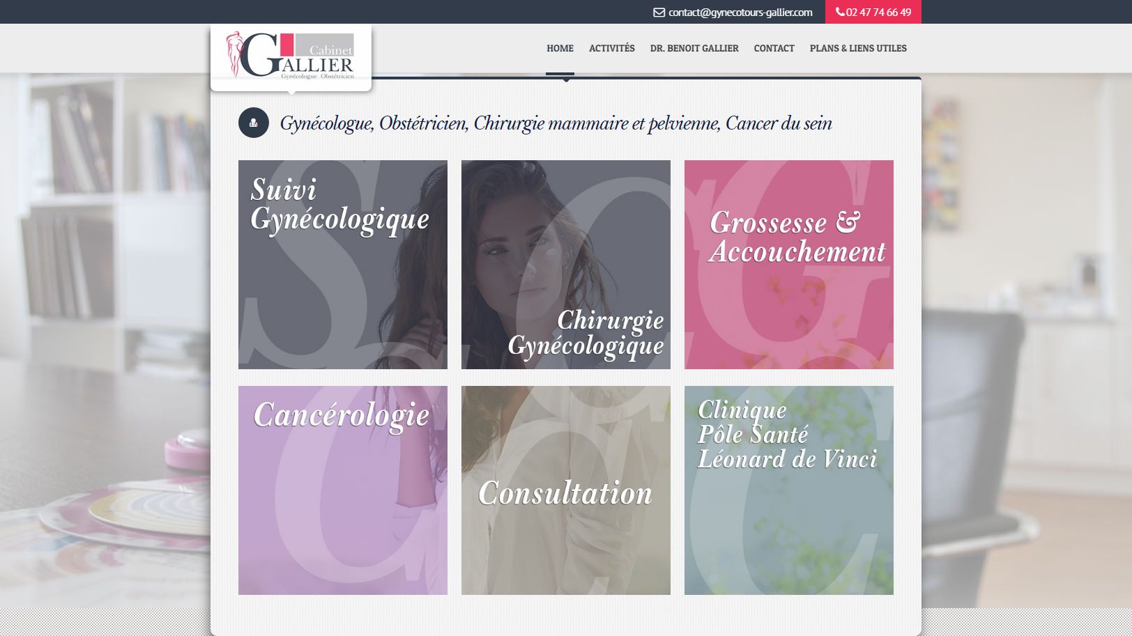 Page d’accueil du site web www.gynecotours-gallier.com
